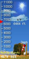 NWS forecast: Mostly sunny, with a high near 57. South wind 5 to 15 mph, with gusts as high as 25 mph. WXSIM forecast: Partly cloudy in the evening, becoming partly to mostly cloudy after midnight. Low -7°. Wind south near calm.