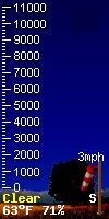 NWS forecast: A slight chance of rain showers between 9am and 10am, then a chance of showers and thunderstorms between 10am and 11am, then showers and thunderstorms likely between 11am and 2pm, then a chance of showers and thunderstorms between 2pm and 5pm. Some of the storms could be severe. Mostly cloudy. High near 71, with temperatures falling to around 48 in the afternoon. Southwest wind 15 to 20 mph, with gusts as high as 35 mph. Chance of precipitation is 70%. New rainfall amounts between a tenth and quarter of an inch possible. WXSIM forecast: Partly cloudy in the evening, becoming partly to mostly cloudy after midnight. Low -7°. Wind south near calm.