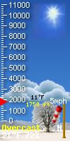 WXSIM forecast: Mostly sunny in the morning, becoming partly to mostly sunny in the afternoon. Cold. High 4°. Wind chill ranging from -17 to -2. UV index up to 1. Wind south around 2 mph.