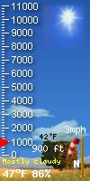 NWS forecast: Mostly cloudy, with a low around 47. East southeast wind around 5 mph. WXSIM forecast: Partly cloudy in the evening, becoming partly to mostly cloudy after midnight. Low -7°. Wind south near calm.